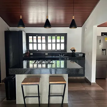 A fully-fitted kitchen includes a fridge, an oven, and glassware. The closest airport is La Vanguardia, which is 20 km from the Villavicencio accommodation.